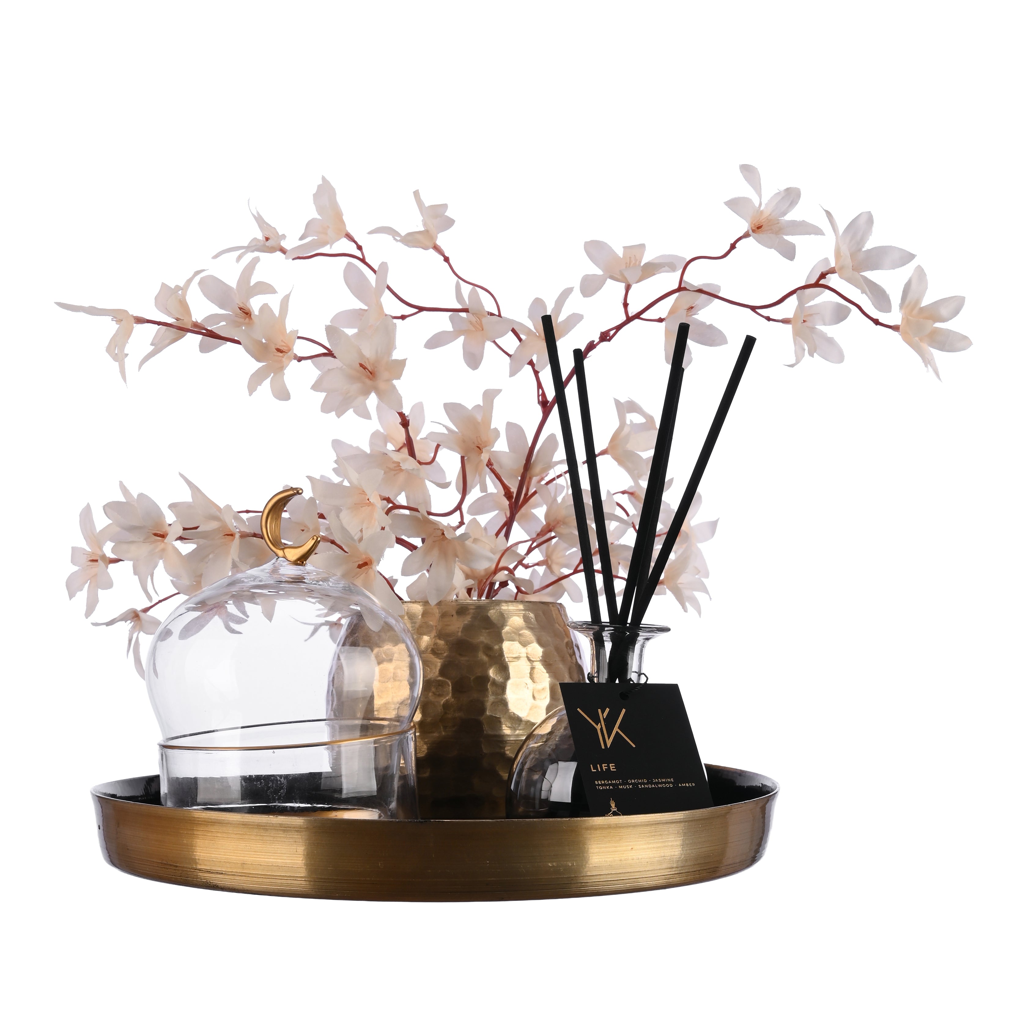 - A hand-blown Pyrex Reed Diffuser features keynotes of Bergamot- Orchid – Jasmine – Tonka –Musk- Sandalwood - Amber